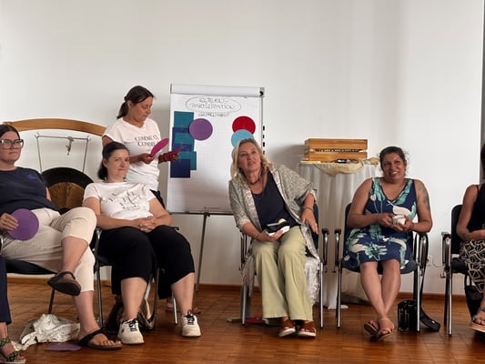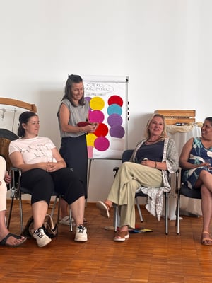 Wir trafen uns am Nachmittag in der Stuhlfabrik, wo noch ein bisschen gearbeitet und reflektiert wurde. Außerdem durften wir uns von manchen Mitarbeiterinnen verabschieden, die weiterziehen.